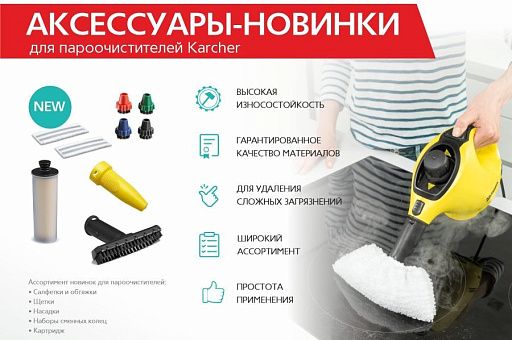 Глобальное расширение ассортимента - теперь в АксЭл представлено множество аксессуаров для пароочистителей Karcher.